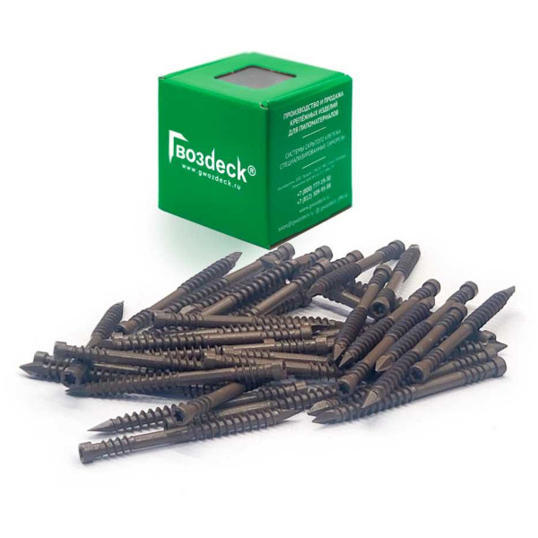 Саморез Гвоздэк 5,0*60 Окрашенный для террасной доски потайной Torx15, (уп.100шт.)