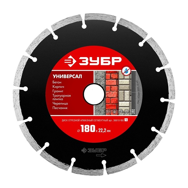 Круг отрезной алмазный ЗУБР сегментный, сухая резка, 22,2х180мм