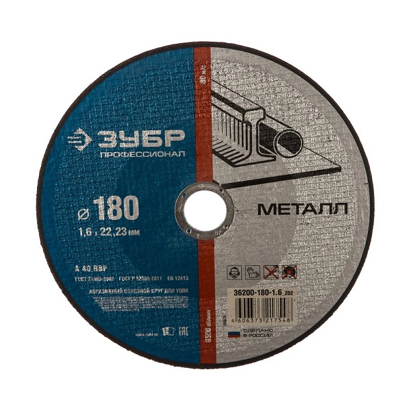 Круг отрезной абразивный ЗУБР по металлу, 180х1,6х22,23мм