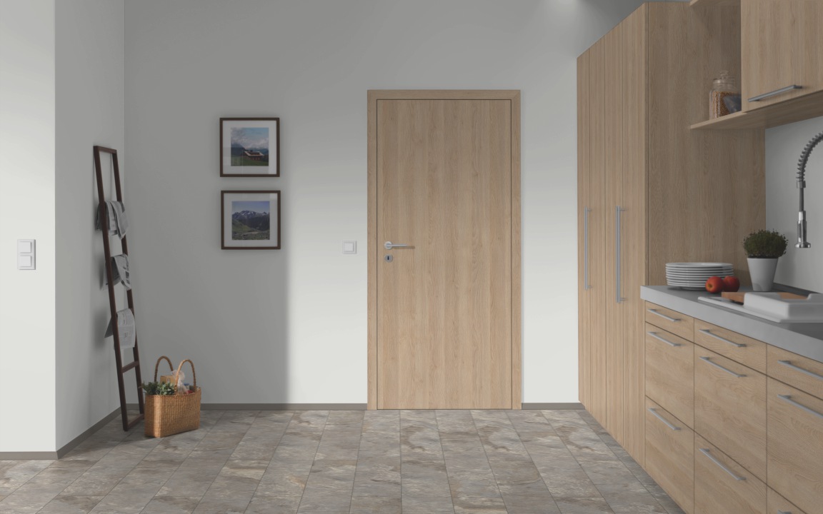 Имитация брашированной поверхности древесины мягких пород с изысканным перламутровым эффектом возникает за счет матовых и глянцевых элементов. В сочетании с этой структурой однотонные декоры смотрятся как окрашенная или лакированная поверхность массива древесины.