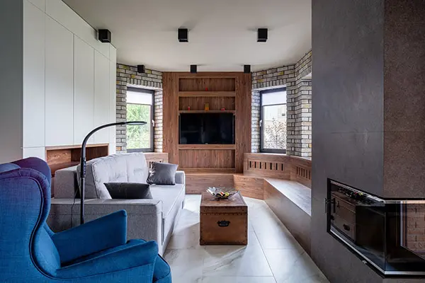 Глубокое тиснение покрытия визуально напоминает узор годичных колец на спиле дерева. Выразительный рисунок поверхности создает атмосферу уюта и природности.