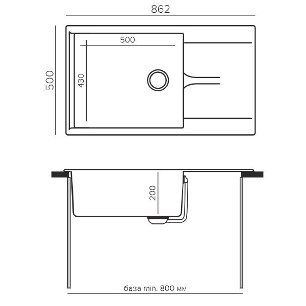 Мойка GALS 862 - невероятный объем чаши. Сочетание вместительной чаши (50*43 см) и большого крыла, размер которого позволит использовать его в качестве рабочей поверхности. Устанавливается в кухонный блок шириной от 80 см.