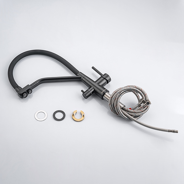Смеситель кухонный Avivacom с гибким изливом и фильтрацией, черный матовый