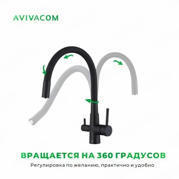 Смеситель кухонный Avivacom с гибким изливом и фильтрацией, черный матовый