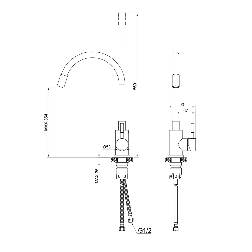 Высота смесителя, мм