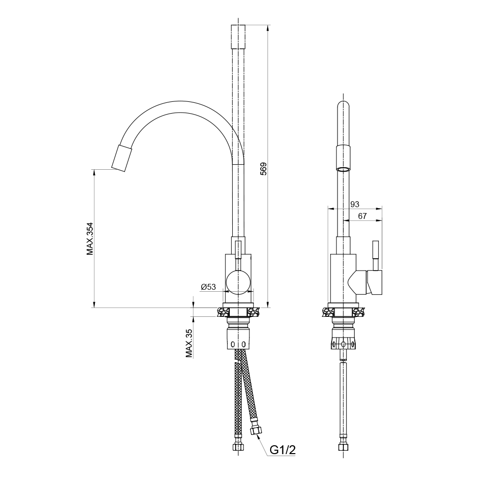 Высота смесителя, мм