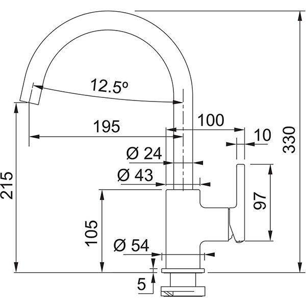 Смеситель кухонный Franke Lina с поворотным изливом, оптика стали
