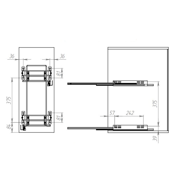 Бутылочница Квадро в базу на 400 мм, с напр. Hettich с доводчиком, хром