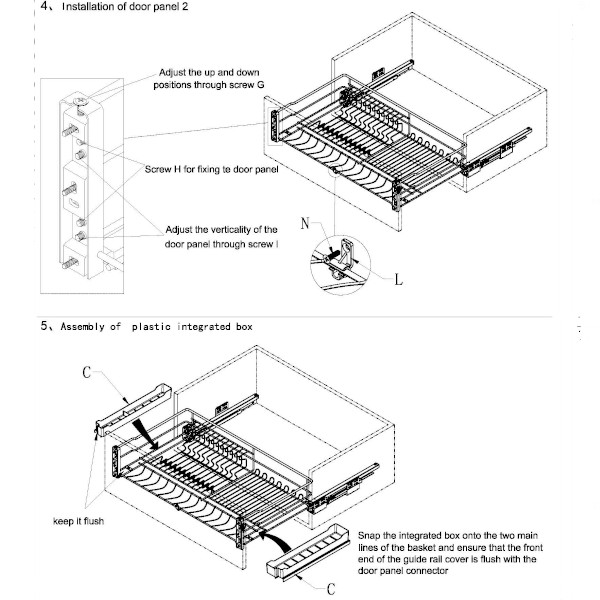 Сушка выдвижная Geek в модуль на 600 мм, с лотком хранения столовых приборов, с доводчиком