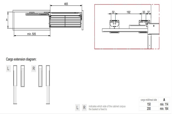 Колонна выдвижная Maxima Classic Cargo Maxi в базу 150 мм с доводчиком, правая, графит