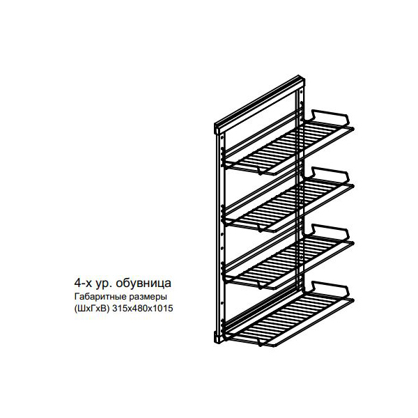 Обувница выдвижная четырехъярусная UMM 315*480*1015мм, черная