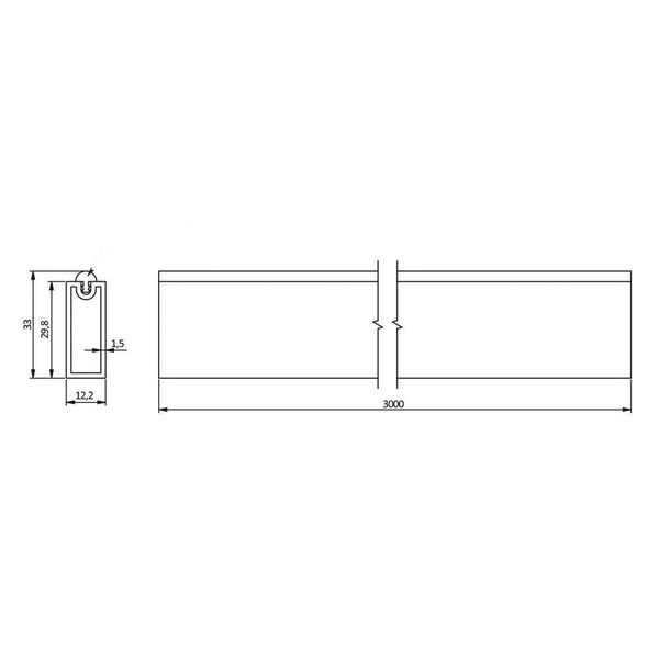Штанга прямоугольная антискользящая 12*32 мм, 3000мм, белая