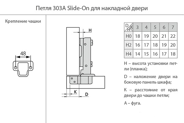 Петля мебельная JET 303 накладная 110° Slide-on, без пружины, без МП