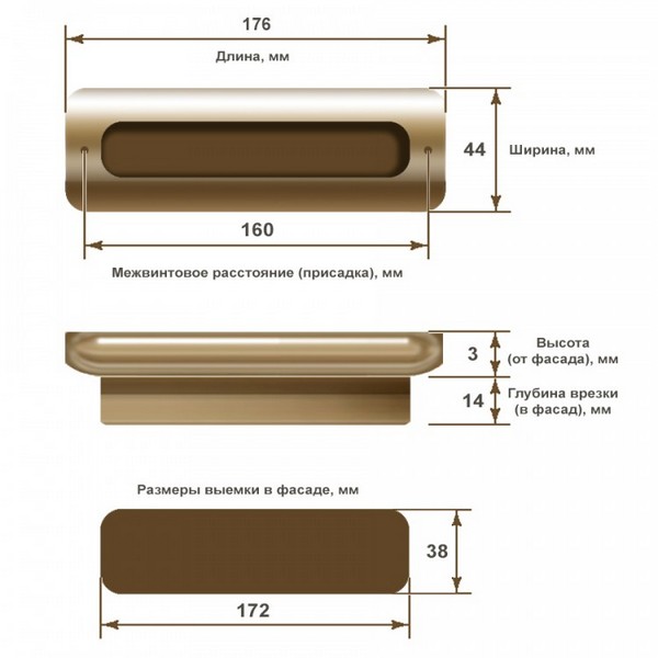 Ручка мебельная Gliss, 160мм, глянцевое олово