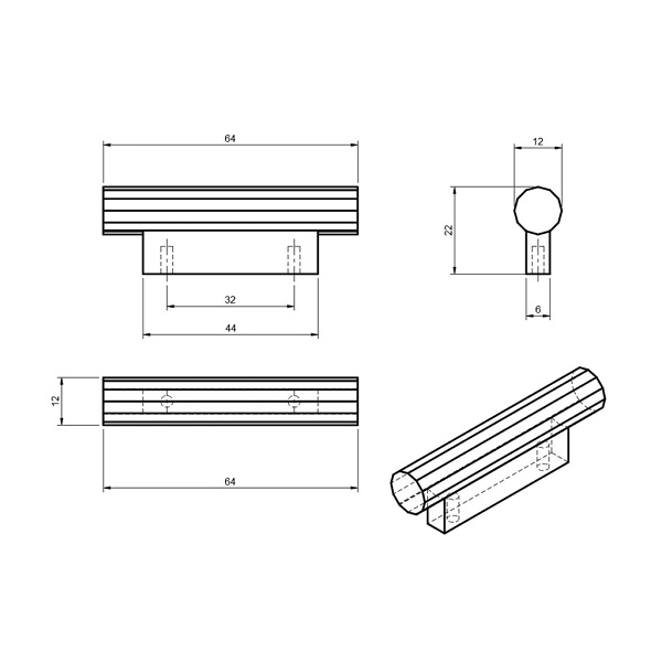 Ручка мебельная Line, 32мм, анодированный матовый черный
