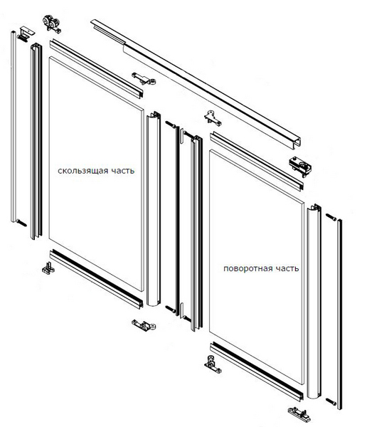 вес складной двери из двух створок - до 60кг