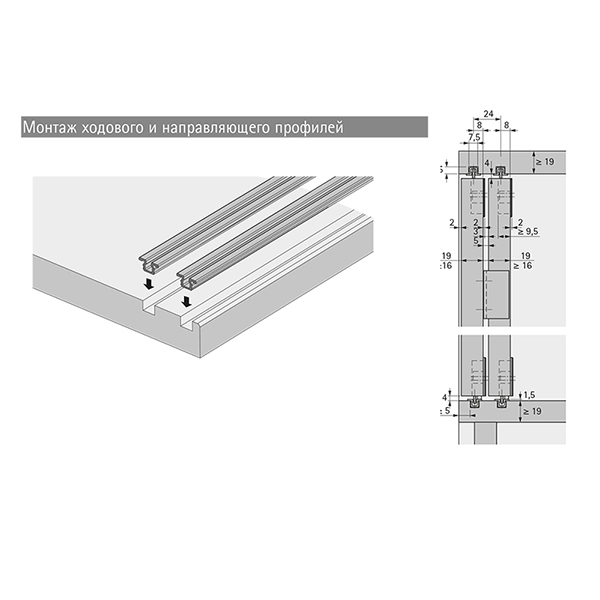 Ходовой и направляющий профиль SlideLine 55 Plus, L2500, пластик