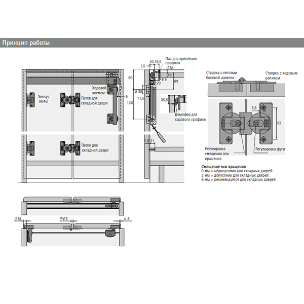 Комплект фурнитуры HETTICH WingLine 230 для одной складной двери с 2 створками