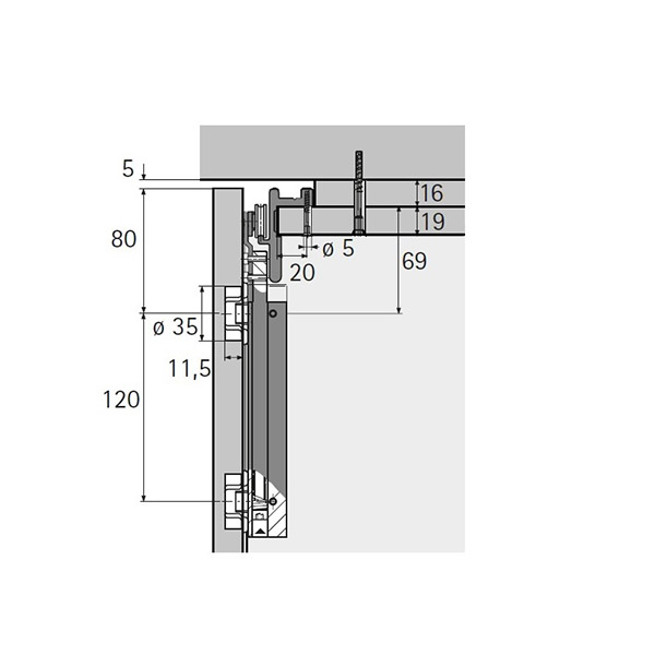 Комплект фурнитуры HETTICH WingLine 230 для одной складной двери с 2 створками