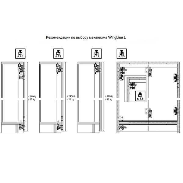 Комплект фурнитуры WingLine L 12 кг без самозакрывания, R