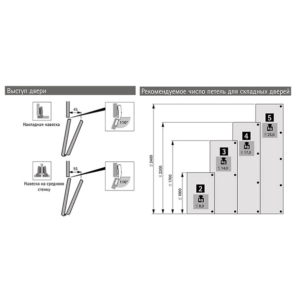 - Содержит все необходимые элементы для одной складной двери с 2 створками, правое исполнение.