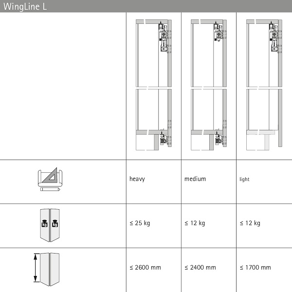 Комплект фурнитуры WingLine L, Heavy, самозакрывание, серый, R