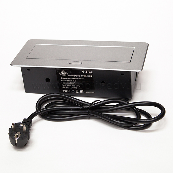 Блок розеток выдвижной горизонт, 3 розетки, EURO, 250 В, 2700W сереб. 2 м