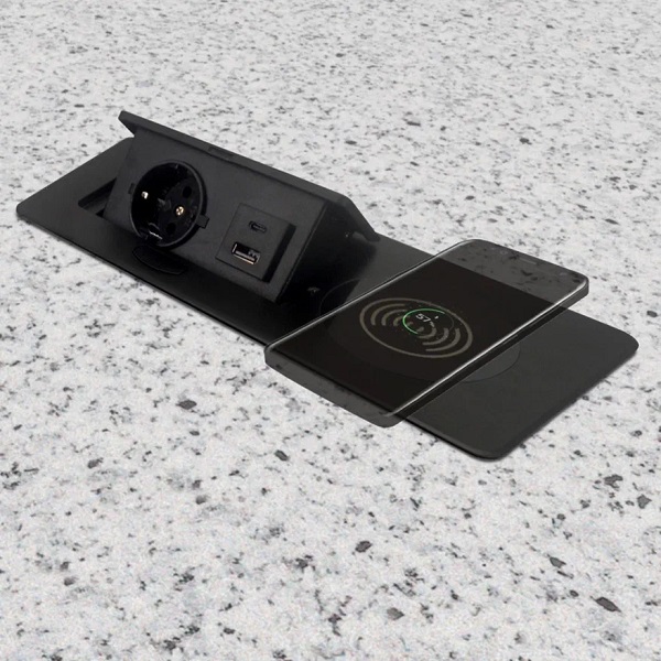 Блок розеток выдвижной горизонт. Complex, EURO, USB A+C, беспр. зарядка, 250В, 2700W, черный, 1,8м
