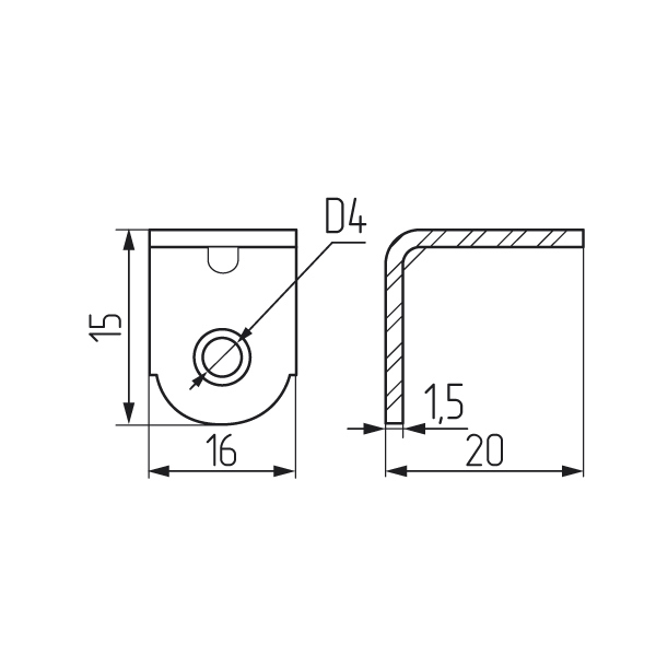 Уголок мебельный с ребром жесткости 20х20х16х1,5 мм