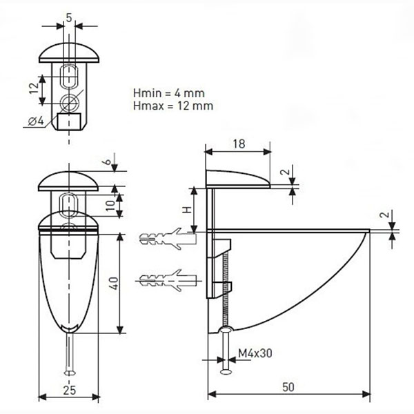 Полкодержатель средний 304 декоративный замак, черный
