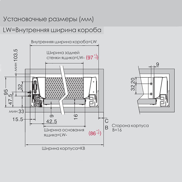 В комплект ящика DTC Dragon Box 500*84,5 мм, c доводчиком входит: