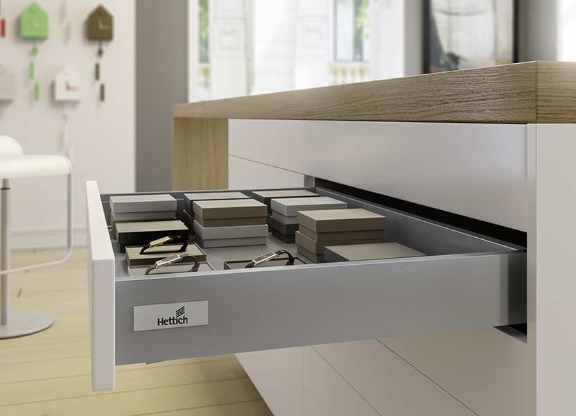 Оцените инновационную систему выдвижных ящиков Hettich! Система с двойными металлическими боковинами.. Отточенные контуры и варианты цветовых решений создают огромный потенциал для реализации идей. Регулируемые элементы позволяют подстроить ящики с учетом Ваших пожеланий. Возможно выравнивание фасада по вертикали, горизонтали и наклону.