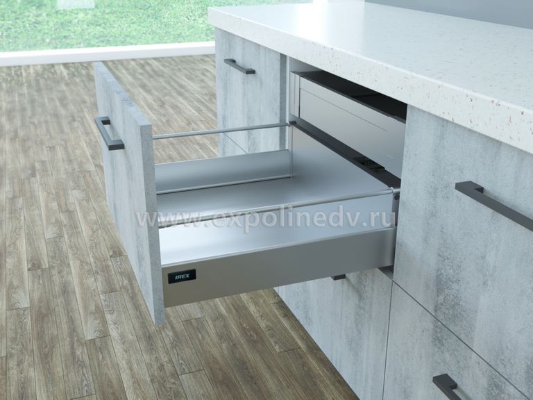 Ящики Samsung IREX - надежная система выдвижения по оптимальной цене. Полное выдвижение позволяет рационально использовать внутреннее пространство ящика. Функция доводчика в сочетании с качественными направляющими обеспечивает плавное комфортное движение ящика. Выдвижные ящики Samsung IREX устойчивы к высоким нагрузкам и могут найти применение в разных вариантах мебели.