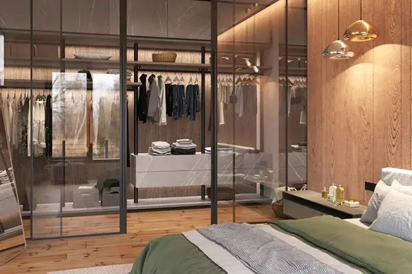 наполнение шкафов-купе, интерьерные перегородки из стекла |