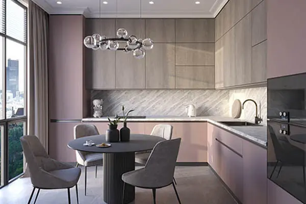 Холодный белый и серый в интерьере уступили место теплому бежевому. Цвет полированной меди, горчичные, абрикосовые оттенки используются как акценты. Спокойную палитру разбавляют темными элементами, например, на светлой кухне используют темную фурнитуру.Теплые бежевые и коричневые цвета заменили белый цвет стен. Акценты стали приглушенными — это ненавязчивые оттенки красного, желтого и оранжевого. Мебель выглядит более обтекаемой, прямые углы заменились скругленными. В помещении появились тактильные фактуры, такие как дерево и натуральный текстиль.