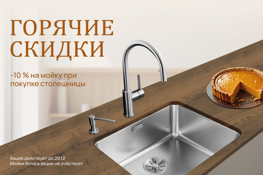 Специальное предложение при покупке столешниц: скидка 10% на кухонную мойку